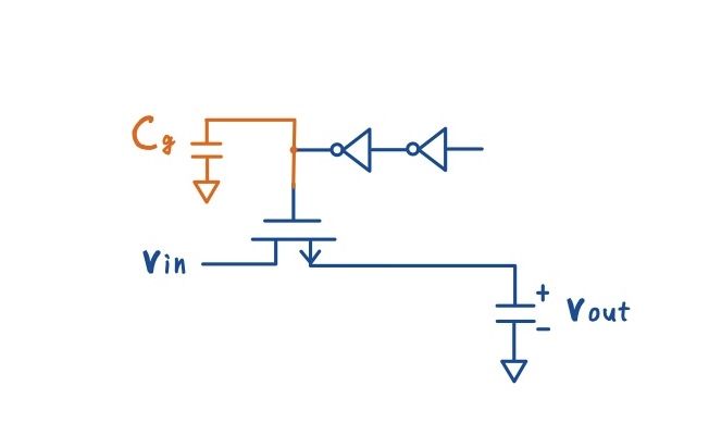 前回の復習になりますが,nMOS スイッチは入力電圧が低い領域であれば比較的素直に動作し,保持された DC 信号に対しては十分な特性を示します.しかし,S/H 回路のように時間変動信号を扱う場合には,nMOS 特有の入力依存性が問題になります.