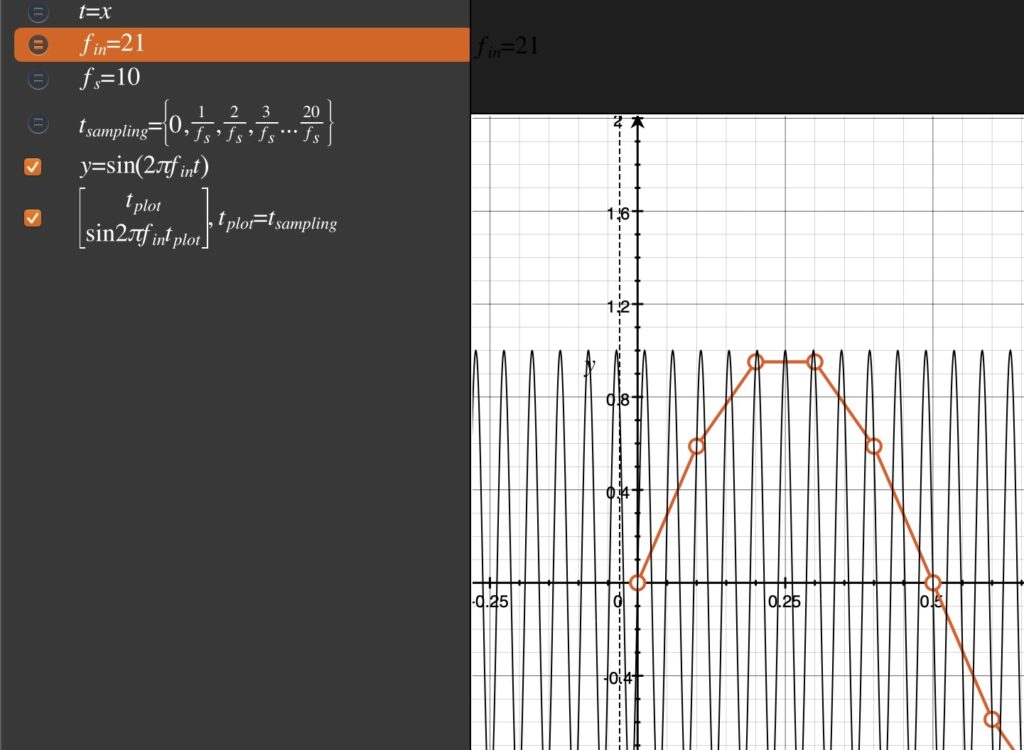 \(f_in\)や\(f_s\)を変えることで,任意の波形を表示させています.