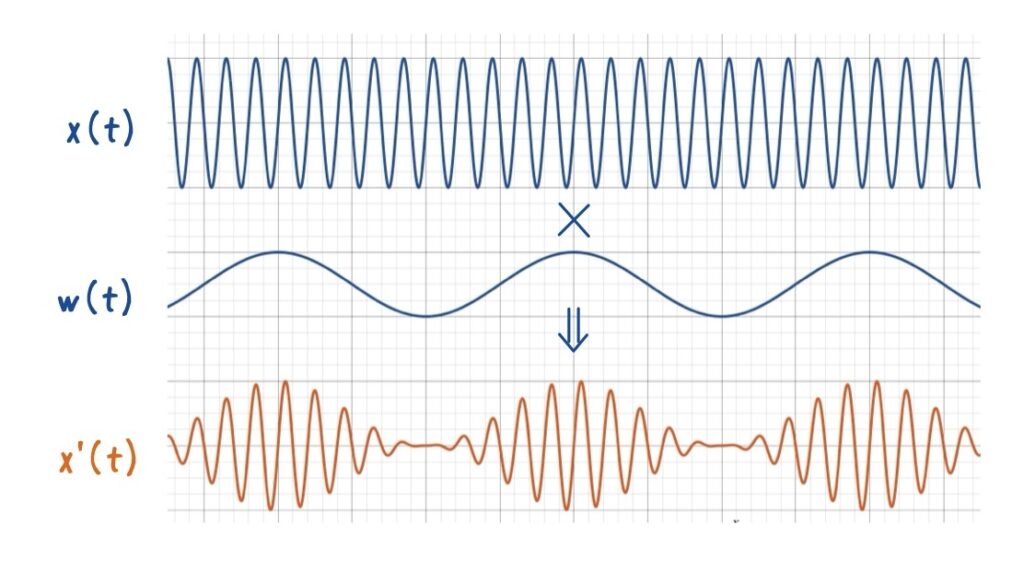 \(x’[n] = x[n] \cdot w[n]\)