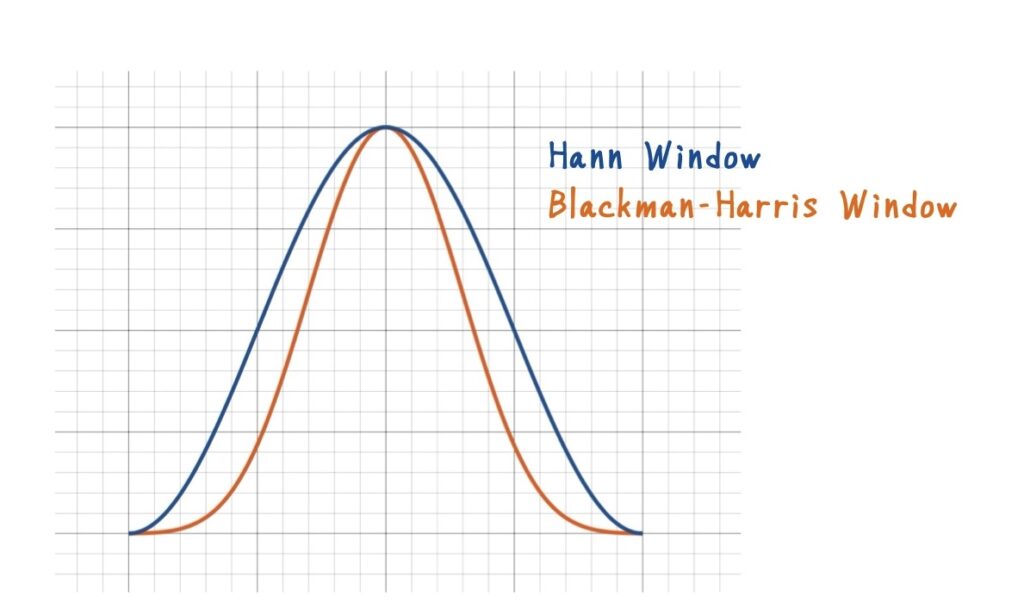 Blackman–Harris窓は,Hann窓よりも端をさらに滑らかに落とすことで,リーケージをさらに小さく抑えます.